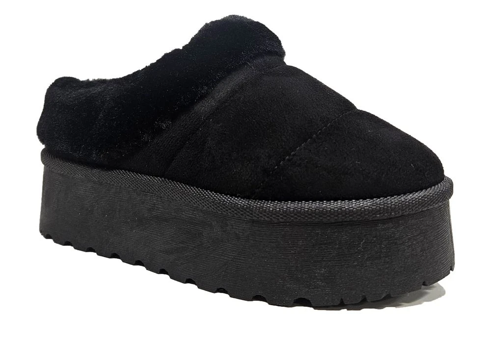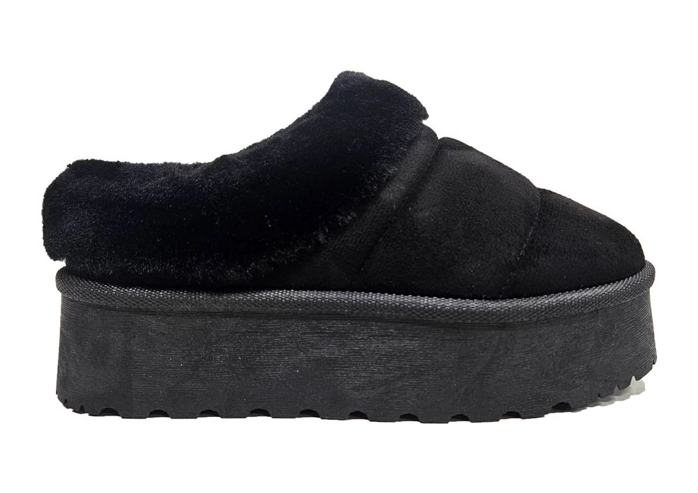 LADIES BLACK MICROFIBRE FLEECE LINED COMFORT WARM PLATFORM MULE SHOE SLIPPERS Black