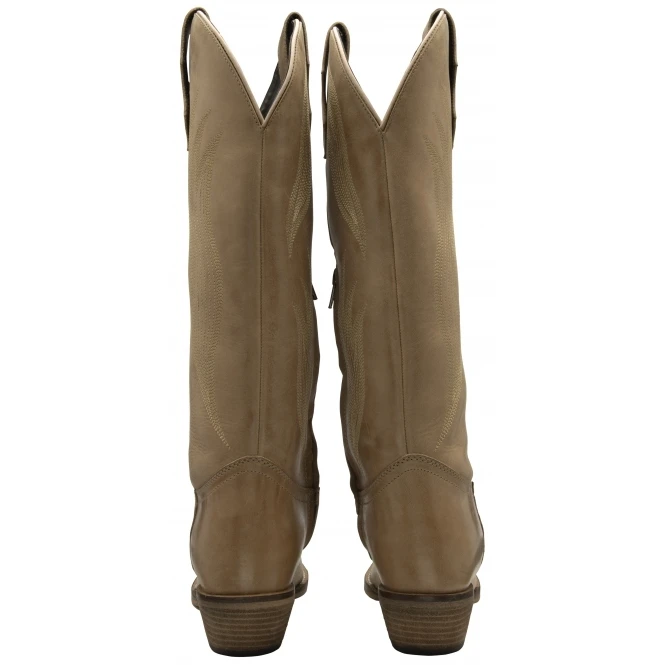 | Inspired by the Wild West, the Ravel Dolly cowboy boot will be the new hot boot of the season. Crafted from leather, the upper of this camel women’s midcalf boot features side pull tabs and boasts a cowboy aesthetic. This chic western boot features a 4.5cm Cuban block heel and an inside zip to enable getting this boot on and off with ease. Team Dolly with skinny jeans and a racer vest for a trendy look. |