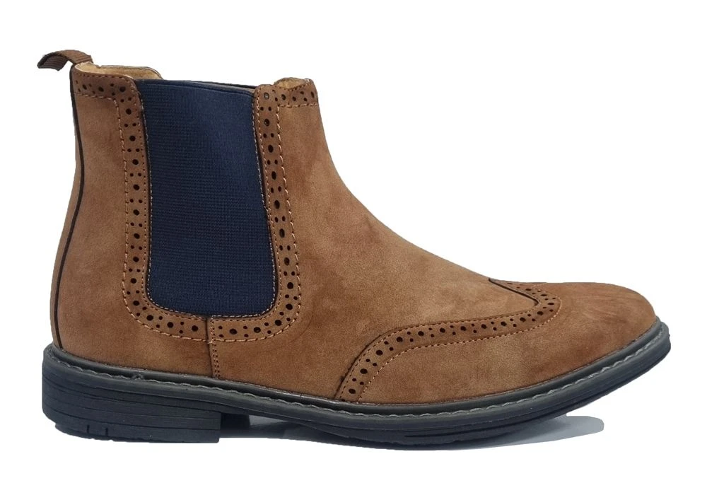 GOOR MENS LOW HEEL STITCH DETAIL TAN SLIP ON COMFORT CHELSEA BOOTS Tan