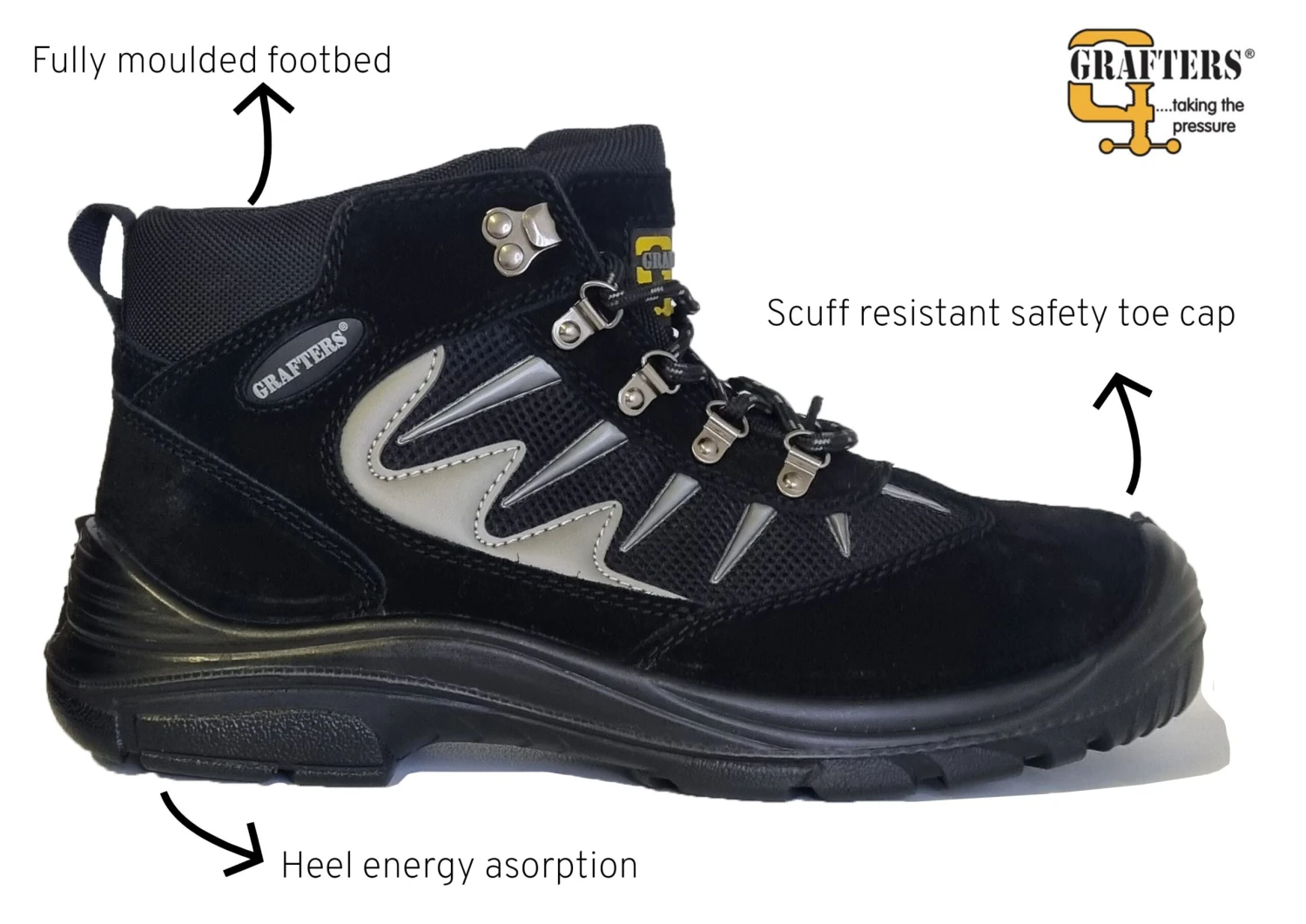 GRAFTERS MENS HIKER TYPE BLACK SAFETY ANKLE STEEL TOE BOOTS Black