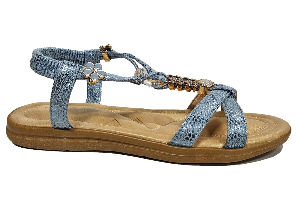 JO & JOE LADIES OPHELIA STRETCH HEEL SUPPORT BLUE JEWELLED SUMMER SANDALS Blue