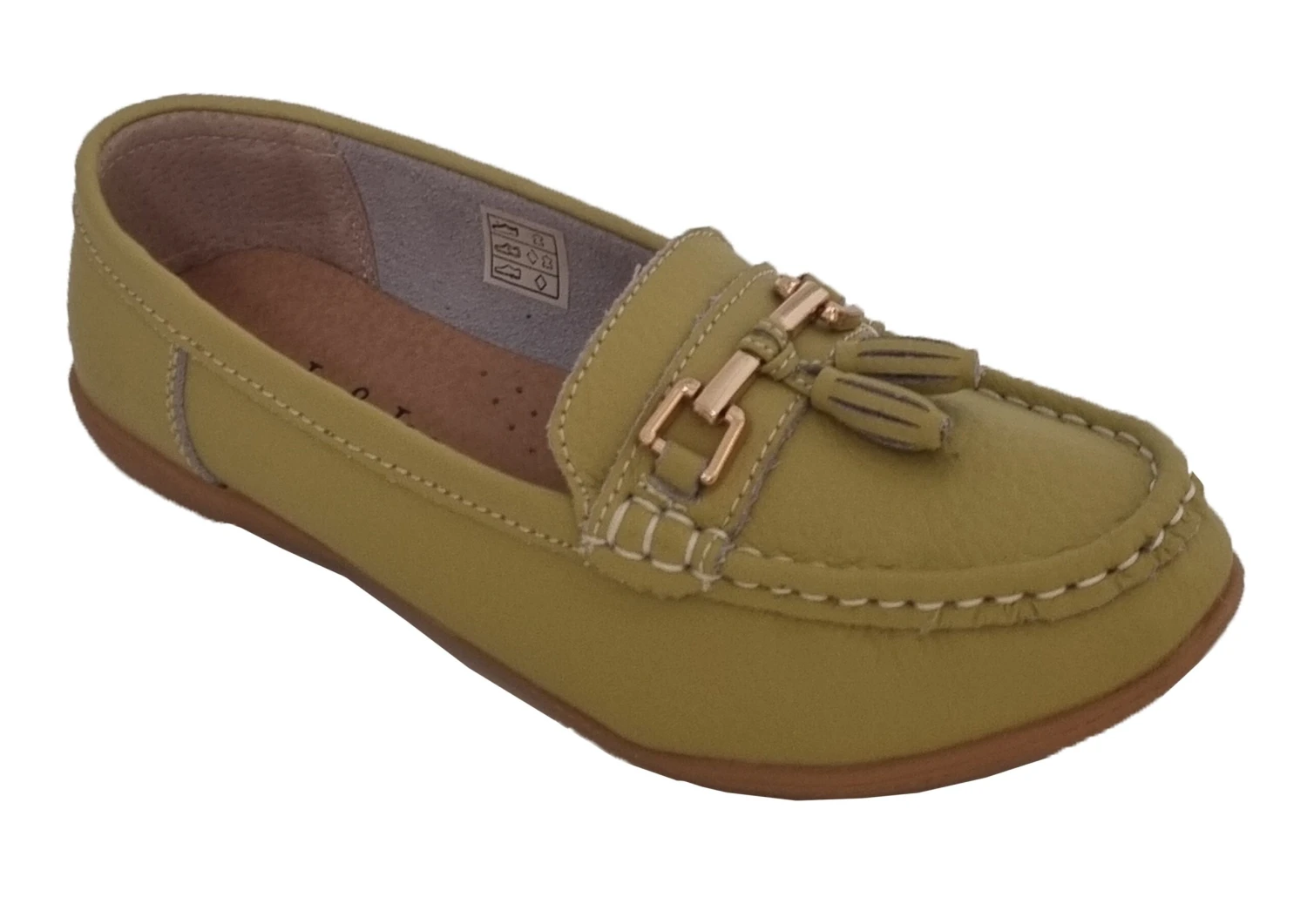 Ladies Lime Leather Tassel Loafers Slip On Nautical Boat Shoes Size 3 4 5 6 7 8