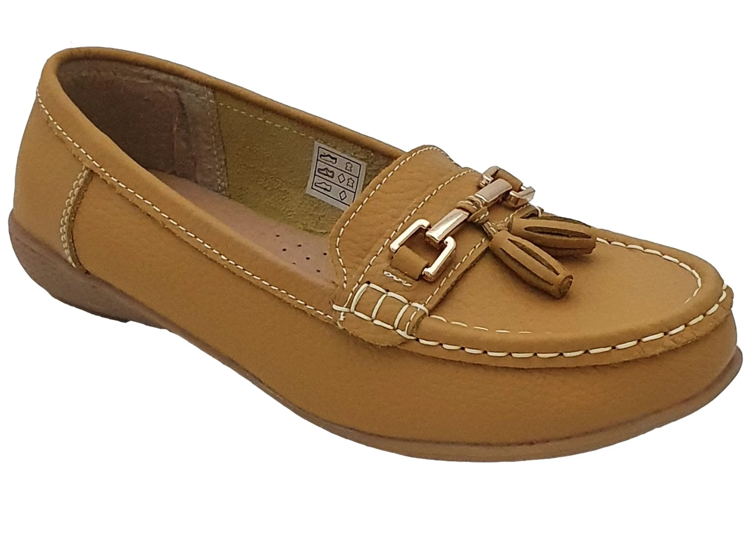 Ladies Real Leather Tassel Loafers Slip On Nautical Boat Shoes Size 3 4 5 6 7 8 Yellow