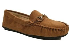 MAYA GRACE LADIES TAN FAUX SUEDE BAR CASUAL SLIP ON SHOES Tan