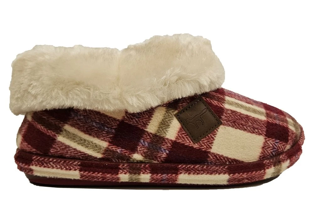 JO & JOE GLENROYAL CHERRY BURGUNDY MULTI FLEECE LINED BOOT SLIPPERS Burgundy