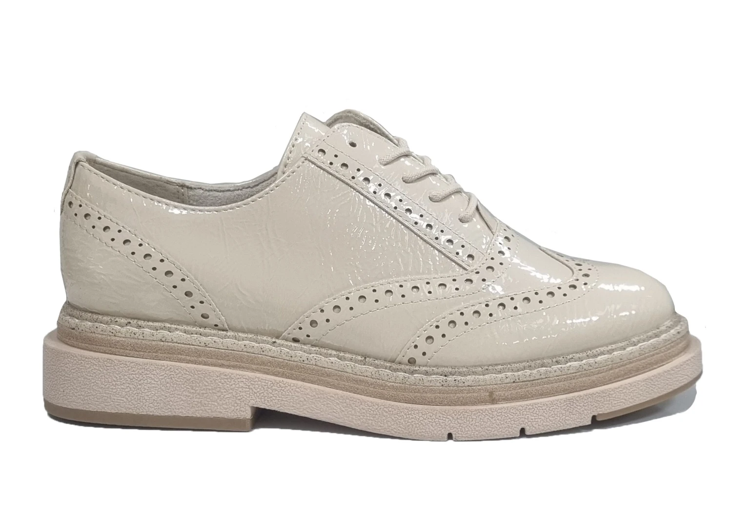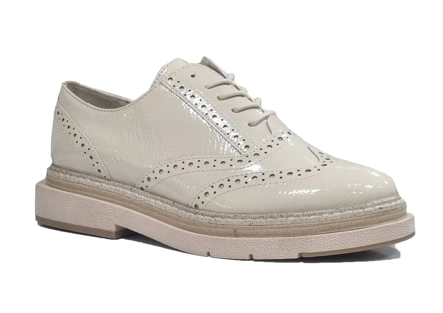 MARCO TOZZI LADIES CREAM PATENT CHUNKY LACE UP BROGUES SHOES Cream