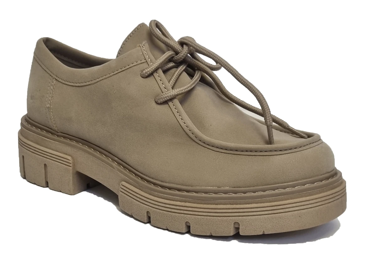 MARCO TOZZI LADIES CHUNKY TAUPE 2 EYELET SHOES Taupe