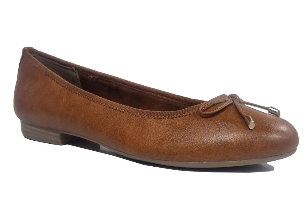 MARCO TOZZI LADIES LOW HEEL COGNAC BOW COMFORT SLIP ON CASUAL SHOES Brown