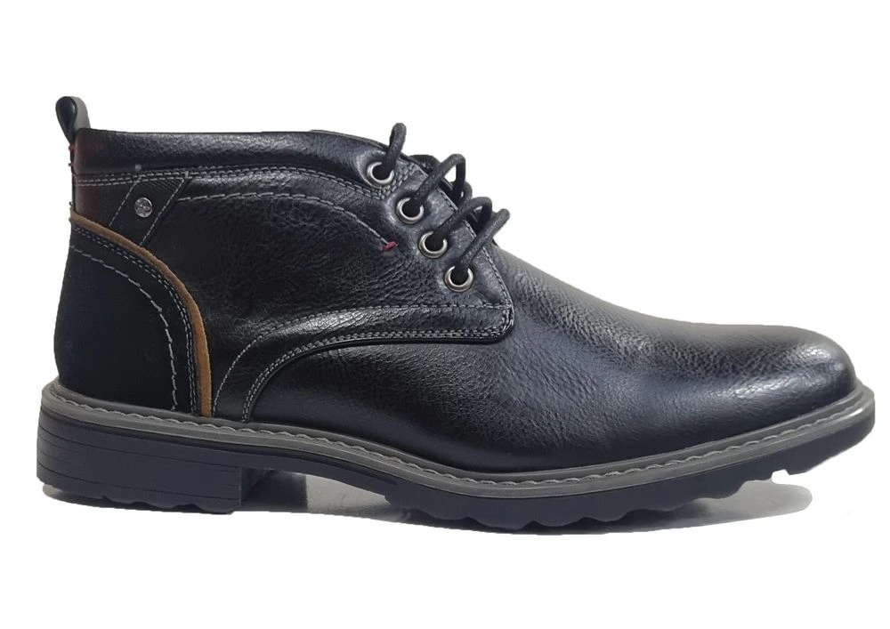 CHARLES SOUTHWELL MENS HUTTON LOW HEEL BLACK COMFORT CASUAL 4 EYELET BOOTS Black