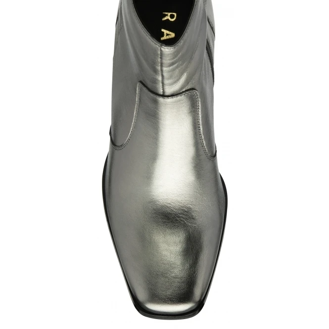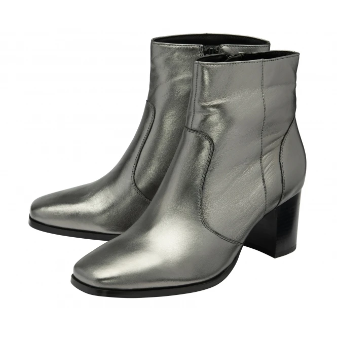The Ravel Louth ankle boot will be sure to add a striking finish to any look this season. This eye-catching design features a silver foil leather upper, an almond shaped toe and a 6.5cm wooden block heel. This women’s silver ankle boot is the perfect style to take you from day to night. Team Louth with a maxi denim skirt, crop top and blazer for a chic look. Louth is also available in copper foil leather.