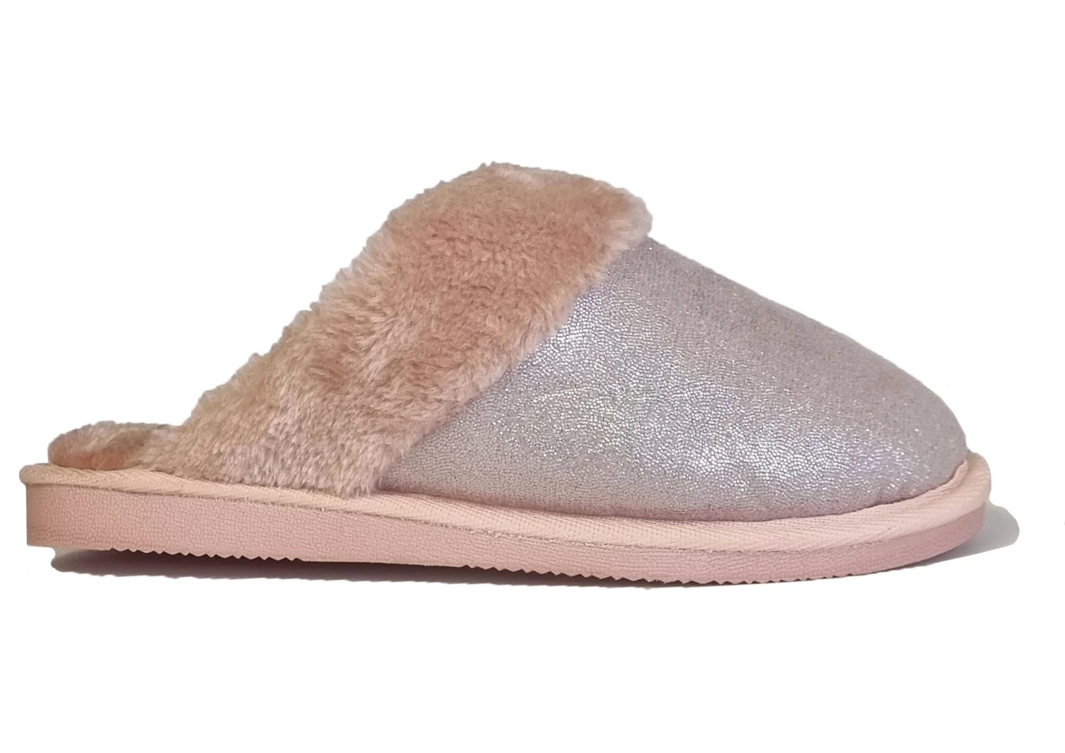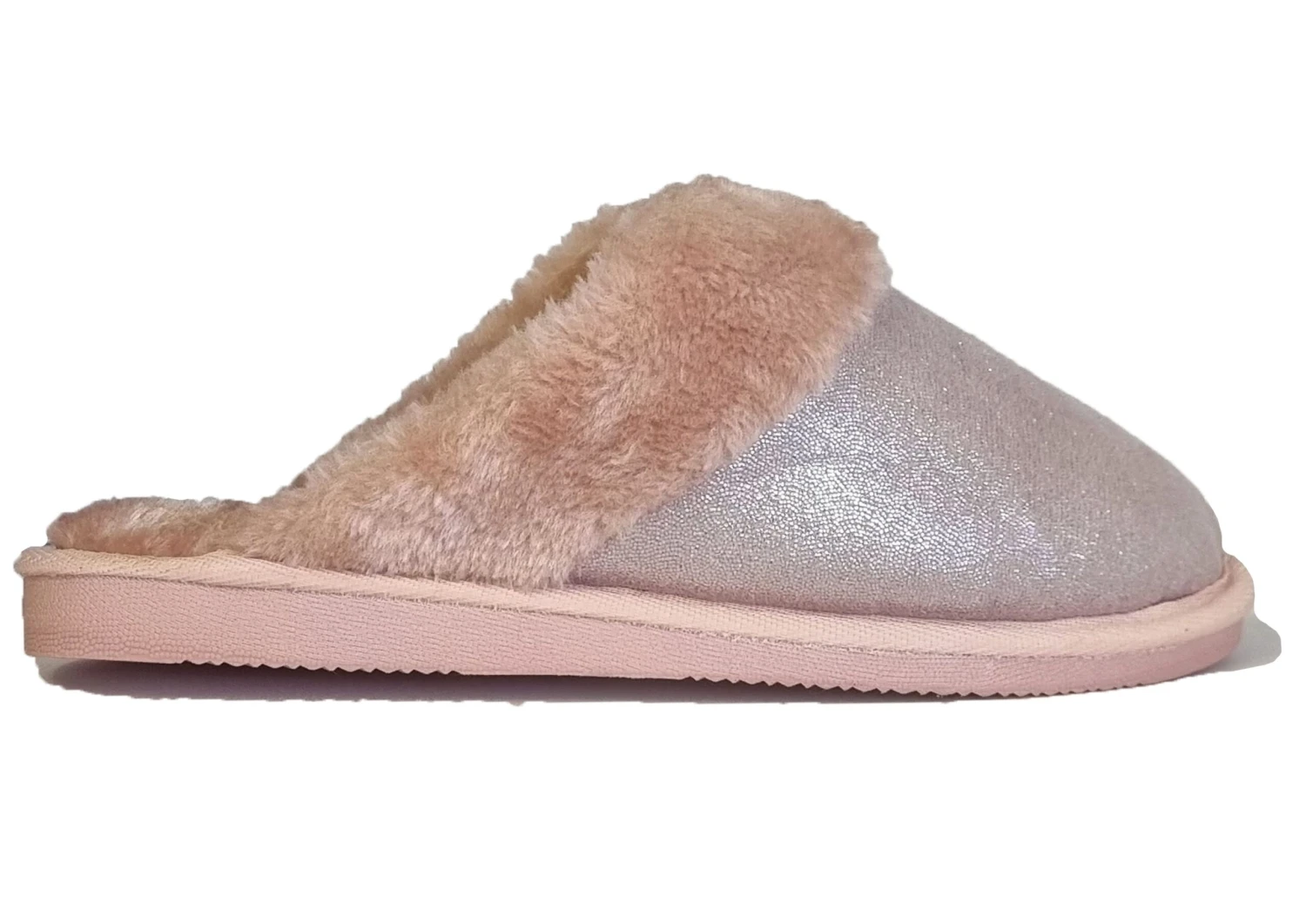 JO & JOE LADIES SHIMMER WOOL LINED PINK MULE SANDALS Pink
