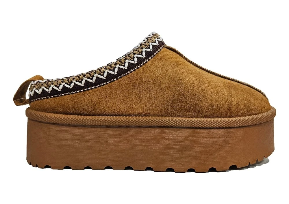 TRUFFLE LADIES VIMTO11 CHESTNUT MICRO WOOL LINED MULE PLATFORM SLIPPERS Tan