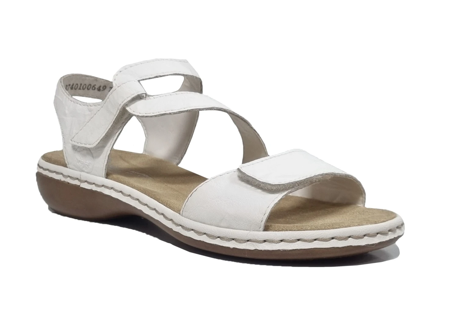 RIEKER LEATHER 2 VELCRO STRAP COMFORT SANDALS White