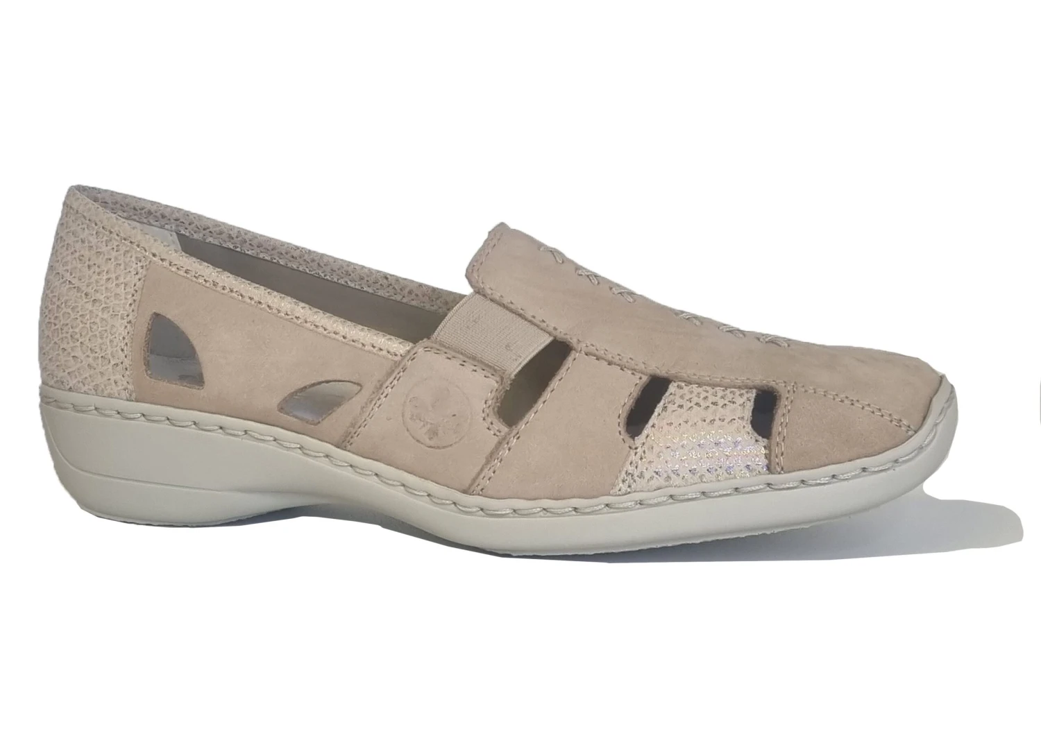 Rieker Ladies Beige Soft Leather Comfort Slip On Loafers Shoes Beige