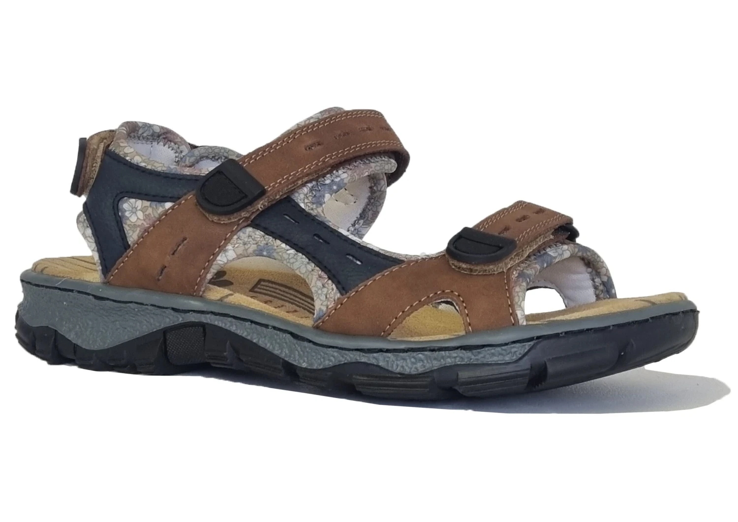 RIEKER TRIPLE VELCRO STRAP COMFORT SUMMER SANDALS Brown