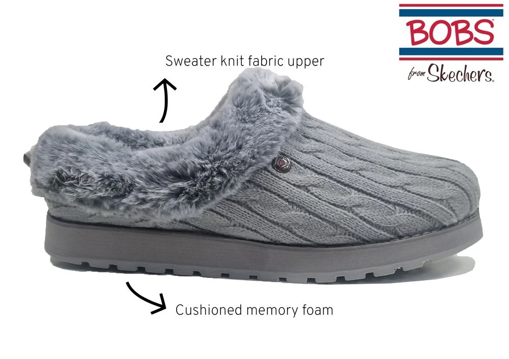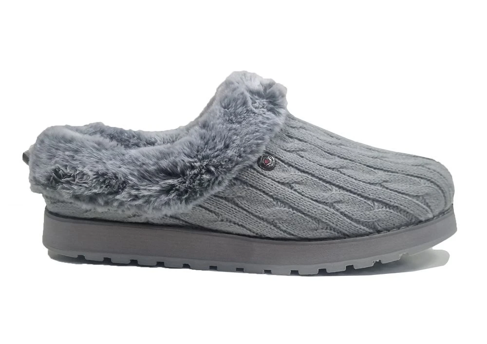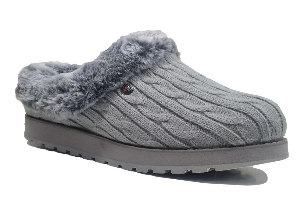 SKECHERS 1204 LADIES KEEPSAKES ICE ANGEL GREY WARM MULE SLIPPERS Grey