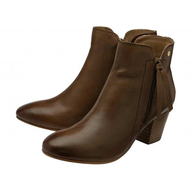 The stylish design of the Ravel Tulli ankle boot means it will pair effortlessly with a variety of looks. Crafted from sumptuous leather, this tan Ravel ankle boot with an almond pointed toe, a 6cm wooden stack effect Cuban heel and a functional outside zip that is complete with tassel detailing means this women’s boot will pair with any look regardless of the season. Wear Tulli with flared jeans and a turtleneck jumper this winter for a modish look. Tulli from Ravel is also available in black leather.