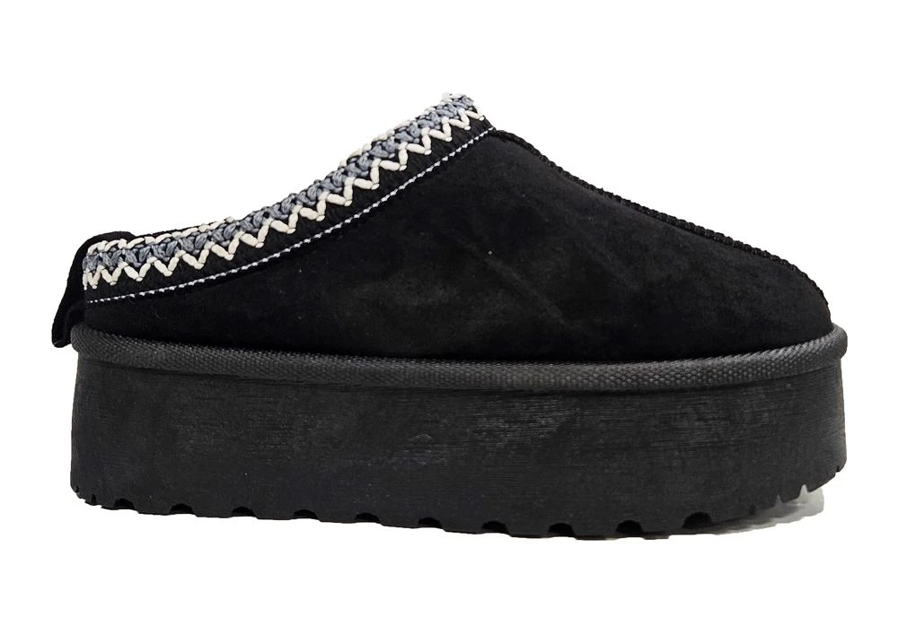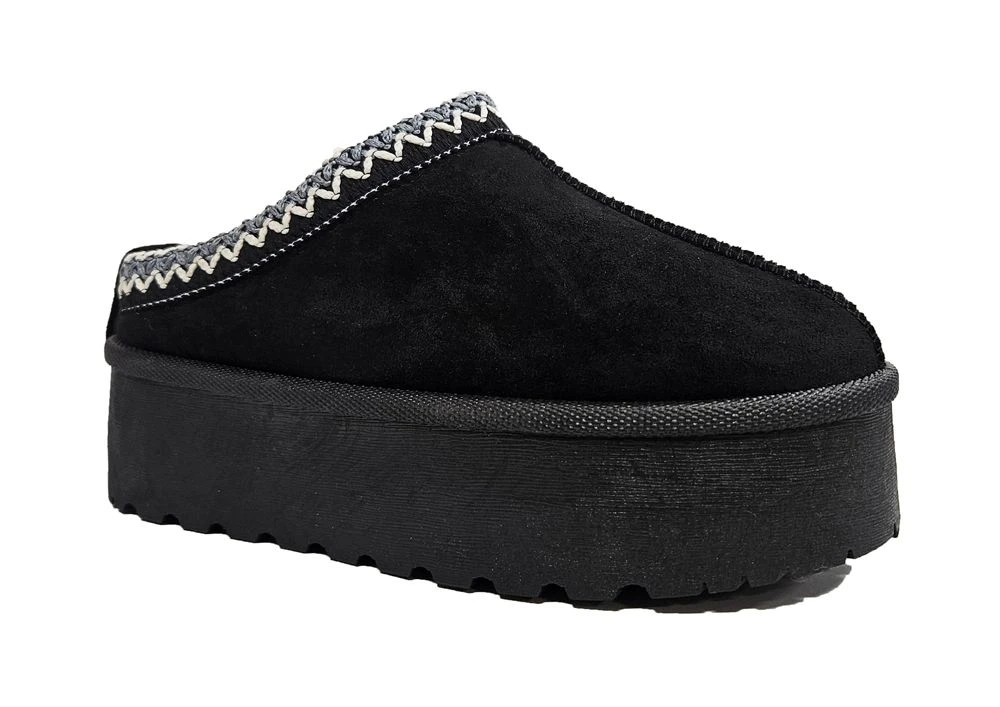 TRUFFLE LADIES BLACK MICRO WOOL LINED MULE PLATFORM SLIPPERS Black