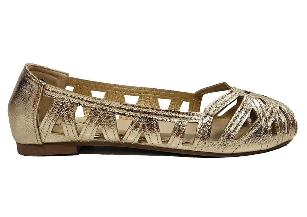 A classic style ballet pump with a modern cut out design.