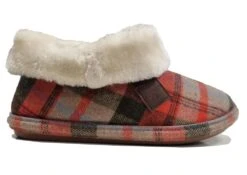Grey Pink Tartan Fluffy Slippers Shoes Womens Cosy Warm Lined Slipper Booties Size 3 4 5 6 7 8 Grey